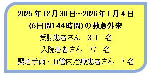 年末年始はご自宅でゆっくり過ごされる患者さんも多いと思います。しかし予期せぬ病気で病院を受診した患者さんもいらっしゃいます。